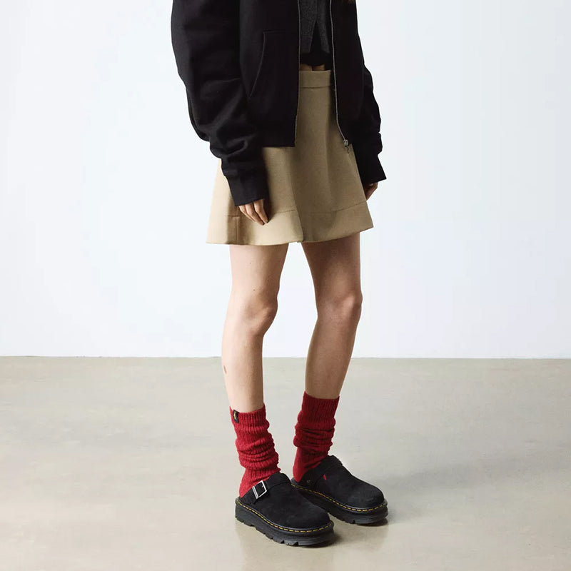 The Zebzag mule is our latest innovation in comfort: built on a hybrid air-cushioned sole that fuses feather-weight EVA with rugged PVC. Crafted from lightweight, versatile suede, they’re designed to be worn however you feel like – in summer or out of the conventional season. The adjustable strap ensures a secure fit, while the welted construction delivers our signature durability. Yellow welt stitching marks the mules as Dr. Martens.